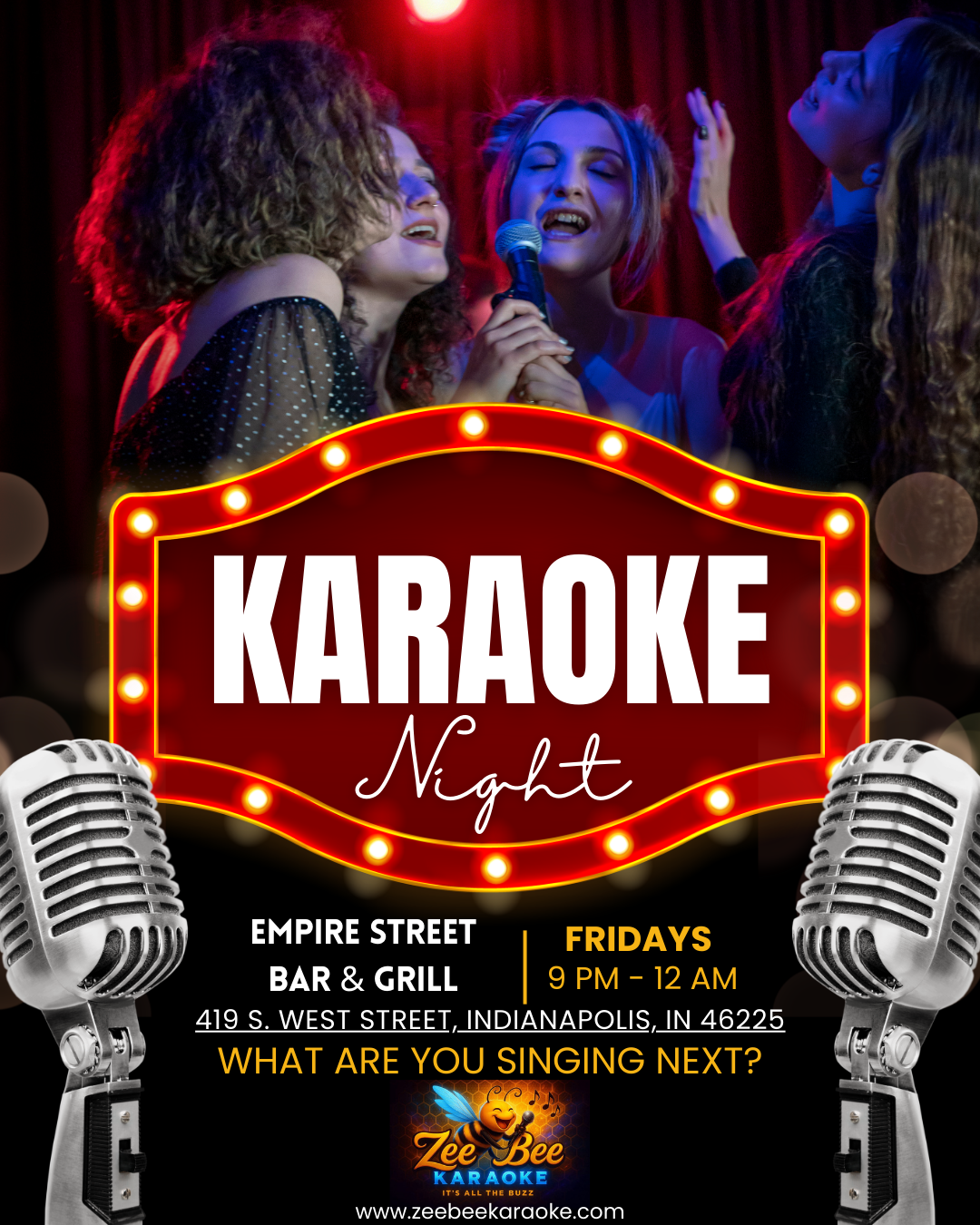 ZeeBee Entertainment LLC is proud to be part of the karaoke scene. From Fishers to Broad Ripple to Mass. Ave. to Downtown, we are turning ordinary nights into unforgettable sing-along celebrations. You don’t have to be any good at singing. Just have fun with it, cheer on your fellow singers, and tip your staff.