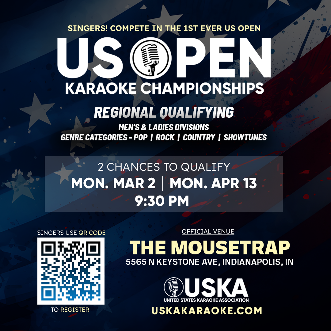 Making its debut in 2026, the U.S. Open Karaoke Championships arrives at a truly historic moment, coinciding with the United States’ 250th birthday. Designed to mirror the prestige and clarity of major sporting events, the U.S. Open will feature Men’s and Ladies Divisions across four genres - Pop, Rock, Country, and Showtunes - with singers advancing from local venue qualifiers through regional finals to a national championship stage. Timed with this once-in-a-generation national celebration, the U.S. Open is intended to honor the diversity of American voices and musical traditions, giving performers the opportunity to compete for national titles during a year of historic reflection and celebration.